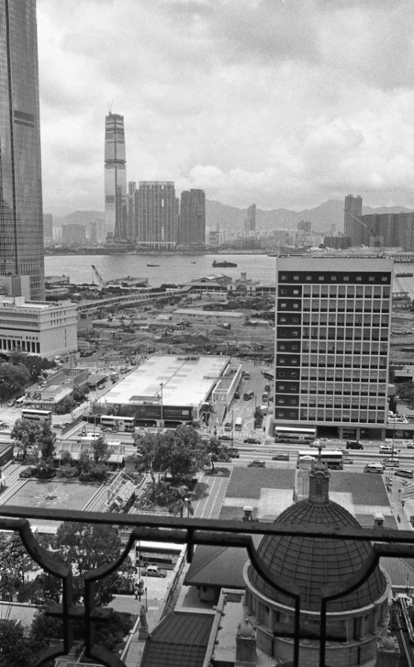 Photography is like a puzzle. Images can be taken days, weeks, months, years apart yet fit together. The first image was taken from the Old Bank of China building with City Hall (the short modernist structure) in the foreground on the right. Second image was taken from the waterfront side of City Hall with a glimpse of the bamboo-like New Bank of China building in the top left hand corner.